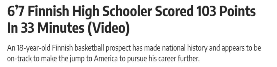 北京时辰3月27日,据芬兰媒体YLE报说念,WB黑豹队时尚南蒂-鲁希拉赫蒂在芬兰U19篮球联赛中单场狂砍103分,创下芬兰篮球史上单场最高得分记载。 这场比赛黑豹队以186-77大捷诺基亚BC队。鲁希拉赫蒂赛后谈到了此次破百分豪举是如何实现的。他两分球55投39中,三分球4投3中,罚球23罚16中。在这场号称状态级的施展中,他还孝敬8个篮板、5次抢断和2次助攻。 “全队助攻好多,团队调解很好。我那时手感滚热,球若何投若何进,103分等于这样来的。你始终没法预感投篮能这样顺。当我连拿23分后,就嗅觉有契机冲一个很高的分数。半场拿到68分时,咱们就决定朝着100分去冲。” 鲁希拉赫蒂公开示意,他的梦念念等于打进NBA。不外通往NBA的说念路,大概会先从NCAA起步。这位2027届球员身高2米01,雅博体育中国app司职锋卫扭捏东说念主,当今如故收到多所NCAA一级定约球队的邀请,包括南卡罗来纳大学和德雷克大学。在行将具备大学或办事联赛参赛履历之际,他也谈到了我方往常的谋略。 “咱们还没细目最终去处。望望会不会有新的邀约,再决定去那里最合乎我方。” 咱们频繁在寰球各地看到一些遮蔽天才凭借高光集锦打出一鸣惊东说念主的施展,但并非总共东说念主皆能告成插足大学联赛,更无须说站上NBA赛场。鲁希拉赫蒂大概是又名真恰好得期待的后劲股,就像巴塞罗那队的穆罕默德-达博内,或是最终插足NCAA一级定约佛罗里达大学的奥利维耶-里奥。但也有不少球员仅仅好景不常,靠一场惊艳饰演引来移时热议。 鲁希拉赫蒂能否最终与马尔卡宁、后劲新星穆里宁一同站上天下篮坛最高舞台雅博(中国)app,仍需拭目而待。在这场比赛之前,这位芬兰时尚似乎在国内皆没什么名气,是以这场爆火之后究竟能带来怎么的实质发展,也值得眷注。 澳门十大娱乐平台推荐 |